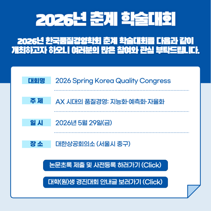 더보기2026년 춘계 대학(원)생 품질경영 아이디어 경진대회 (3월 초 업로드 예정)