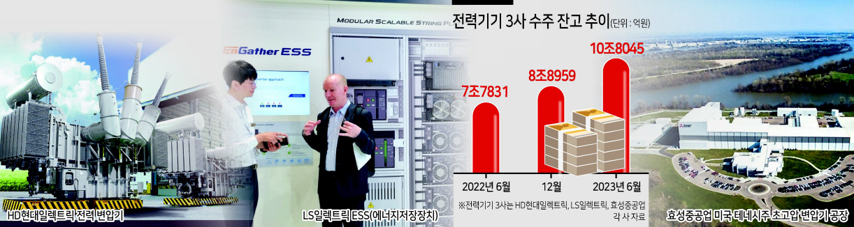 HD현대일렉트릭, LS일렉트릭, 효성중공업 등 전력기기 3사의 총 수주 잔고가 올해 상반기 10조원을 돌파했다. 인플레이션감축법(IRA)을 통해 자국 내 공장 유치에 사활을 걸고 있는 미국을 비롯해 전 세계적으로 인프라 투자가 활발히 일어나면서 전력기기 수요가 증가하면서다.