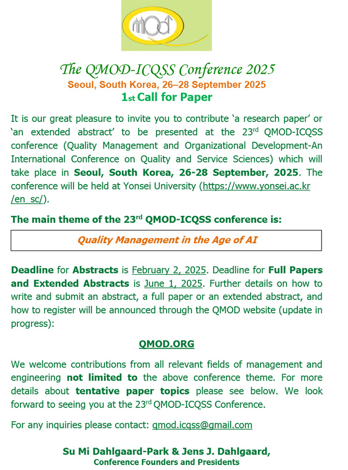 The 23th QMOD-ICQSS Conference 2025 논문 모집 안내