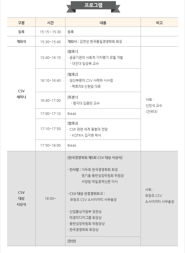 한국경영학회 <2018 CSV소사이어티 세미나 및 CSV 대상 시상식> 안내