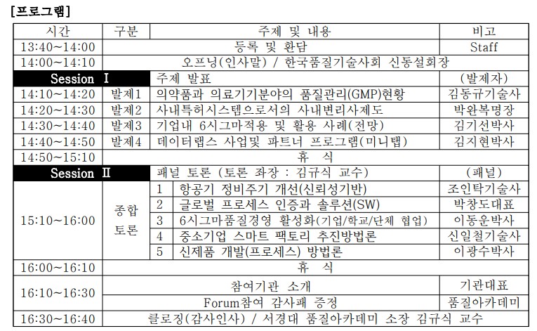 뜻 깊은 자리에 품질기술사, 품질명장, 품질컨설턴트 및 기업품질책임자(실무자) 여러분들께서 많이 참석하시어 자리를 빛내주시길 바랍니다